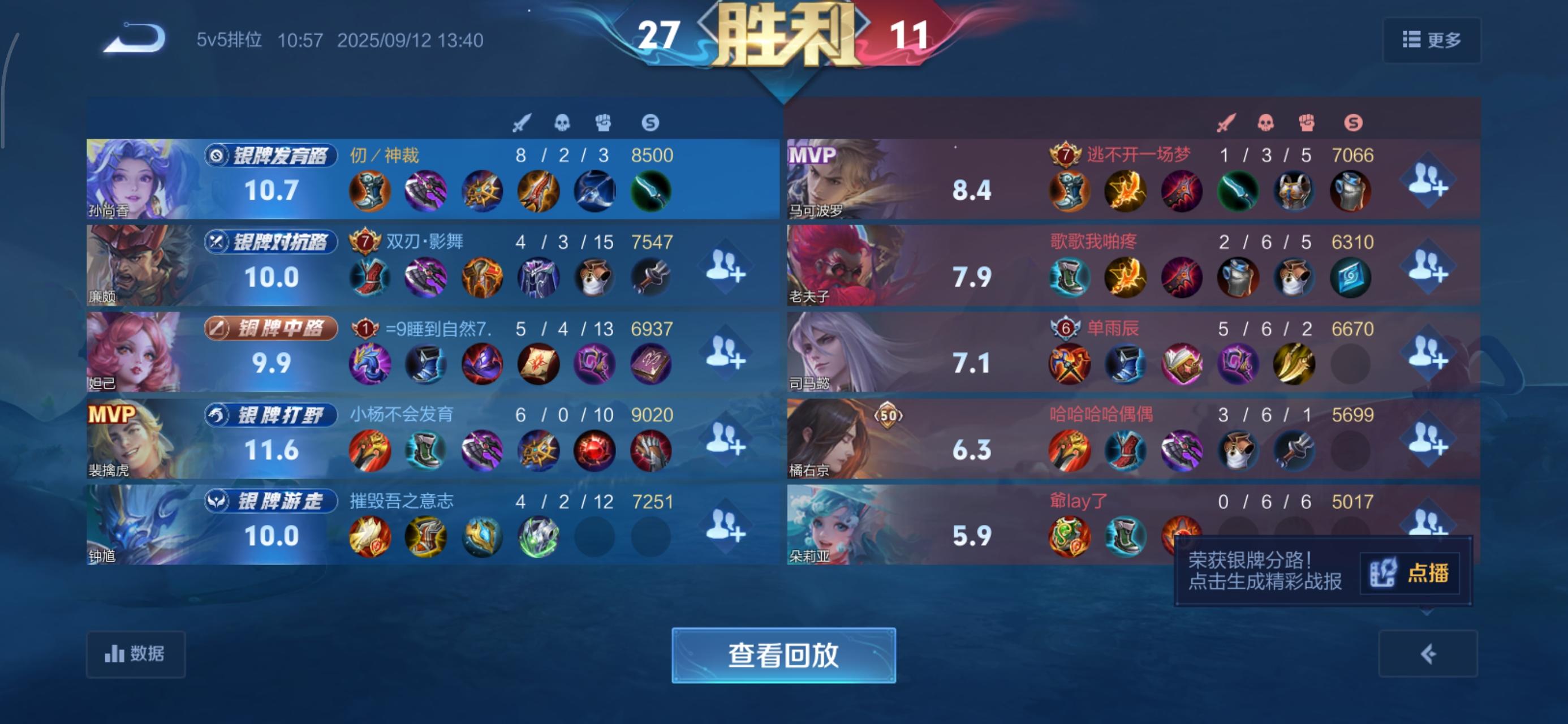 马可那把表面看澜和庄周两个贵7,实际上的真人感觉只有澜,同时,澜也是个没啥水平一个劲埋头猛冲,前期就拿到了许多人头,后面突然就开不动了,被压制的死死的。