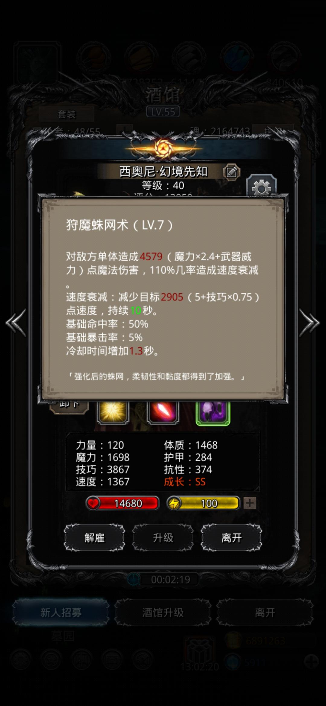 在团灭了一天的情况下,我总结一下我经验,幻境还是要命中率高才好,影兽闪避高(120%),我们得先命中了才能给它上减速。只要幻境挂上减速,圣殿晕上就行(也可以用其他人物晕)装备如下