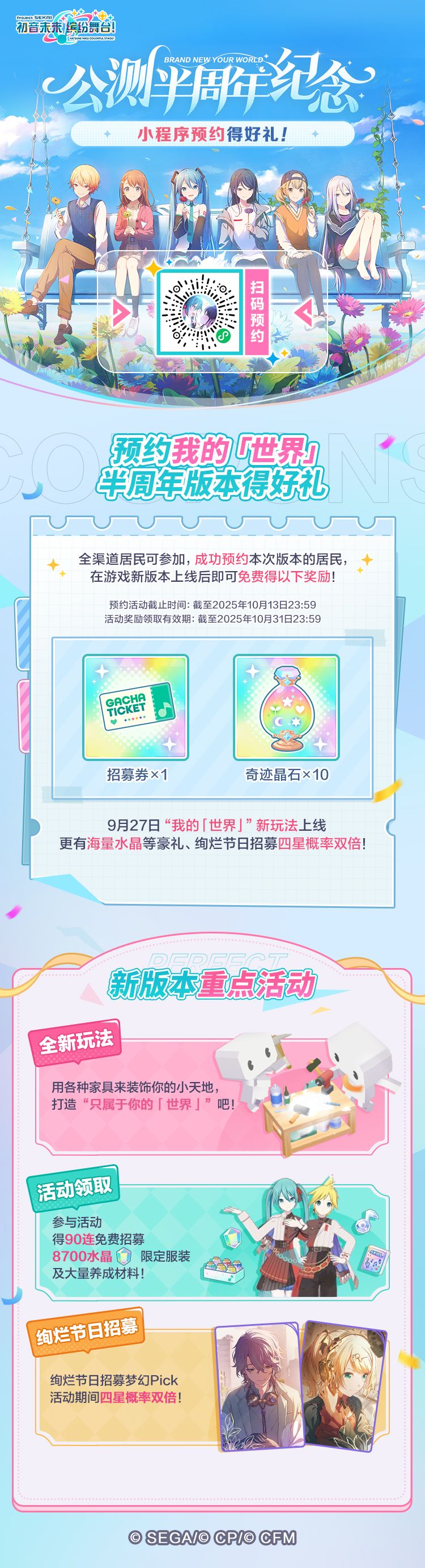 半周年系列活动即将重磅开启!即日起,前往小程序预约半周年版本,即可赢招募券、奇迹晶石等好礼!欢迎居民前往参与活动。