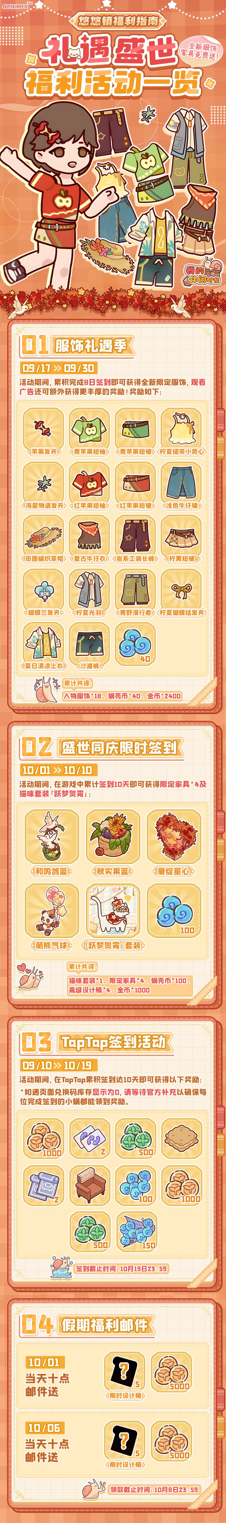 刚刚吃饱,手机满电,躺在窝里,然后发现悠悠镇最新一期的福利指南更新啦!
