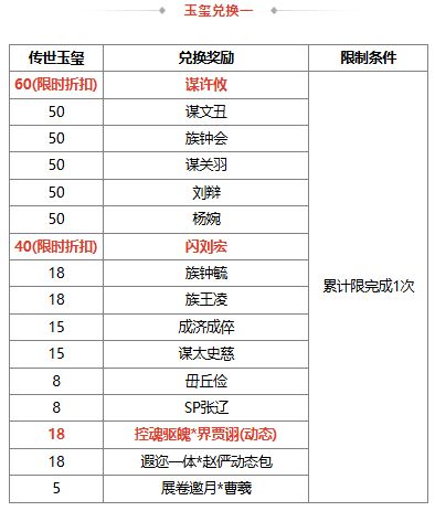 2、若兑换奖励是在此次活动前已拥有的永久武将、皮肤、三国秀,则无法重复兑换 ;