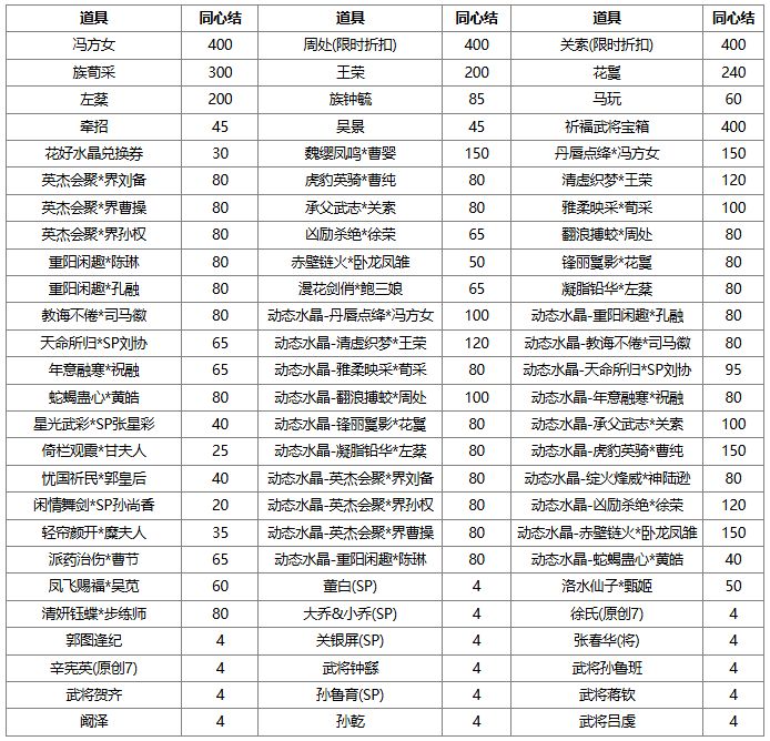 1、同心结可兑换奖励,若兑换奖励是在此次活动前已拥有的永久武将、皮肤、三国秀,则无法重复兑换。