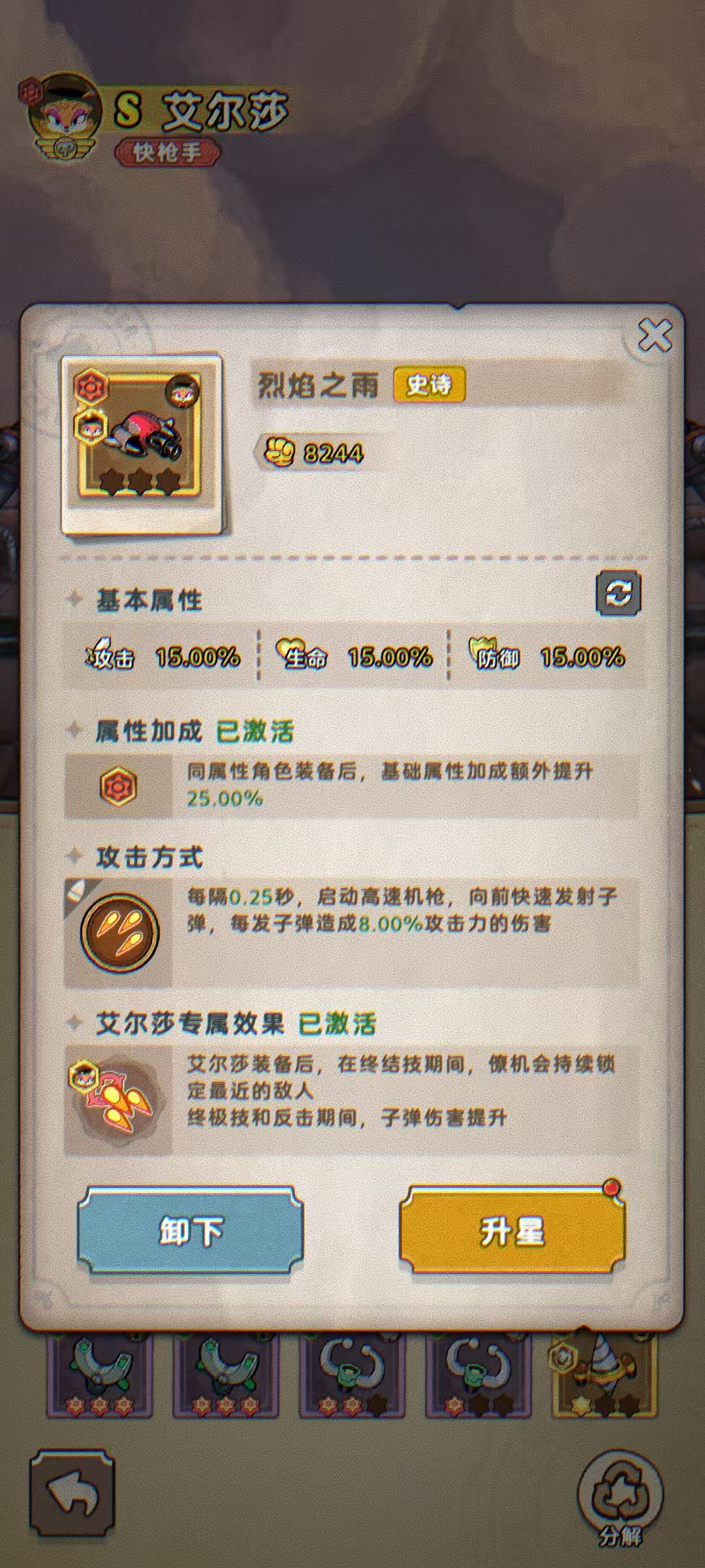 参与示例:小发条在机械宝库活动中抽到了艾尔莎的专属僚机:烈焰之雨!真是太幸运啦!