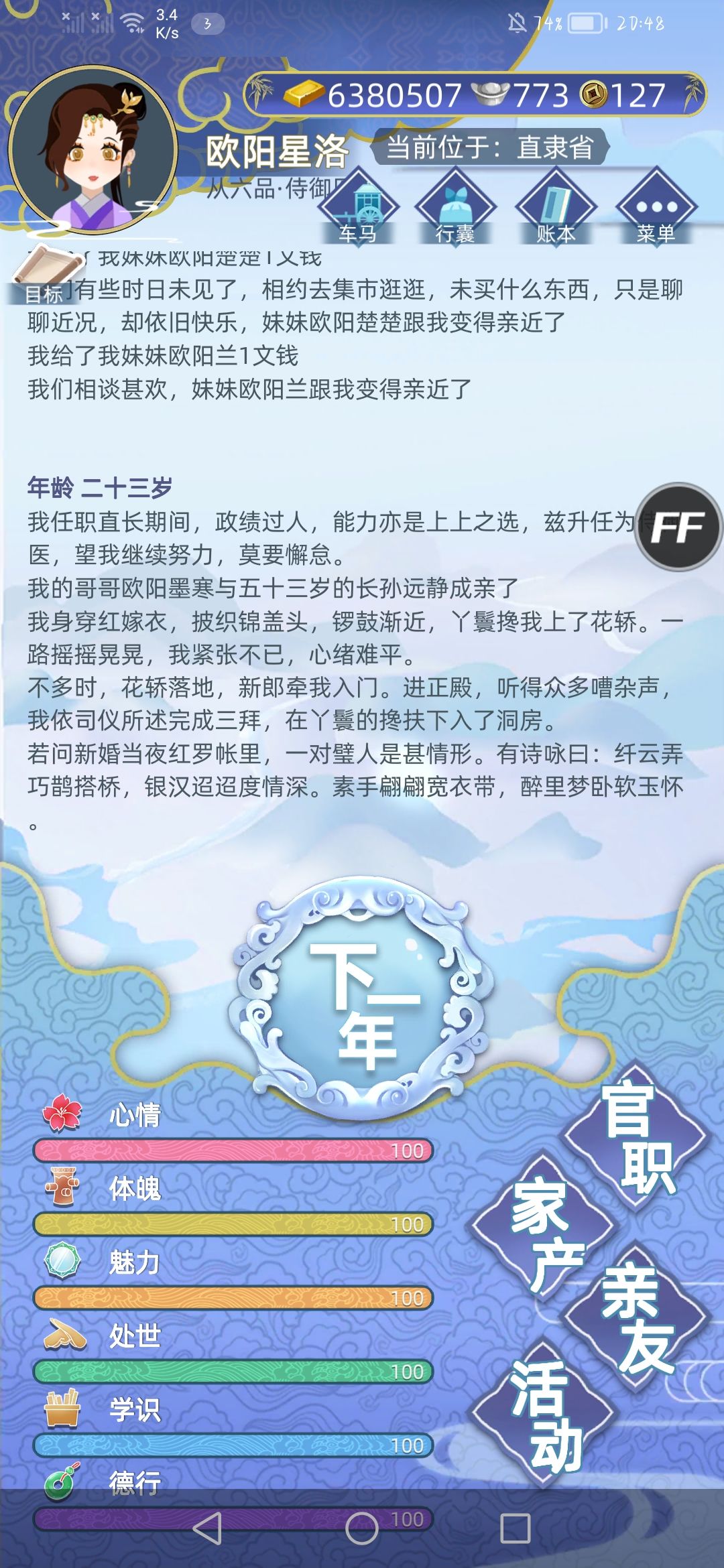 如果你在宫里的话每年可以同时采药配药,采药前可以先去杂货铺的药材摊找些药 升职是每年年初第一个弹出来的,在主药以上都能结婚,前期感悟在85%左右第二年就会升 你可以每一年年末存档 次年要是没升职直接退出重进