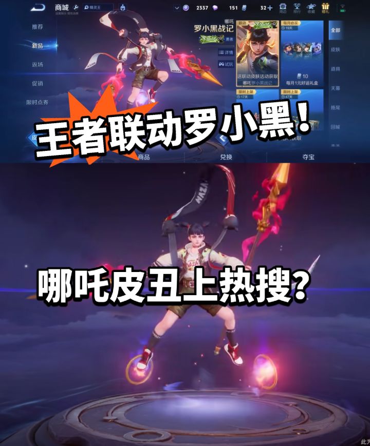 这款皮肤把动画里哪吒的丸子头、运动外套和T恤都搬到游戏里,混天绫、三尖两刃枪都完美还原! 有动画那感觉了。
