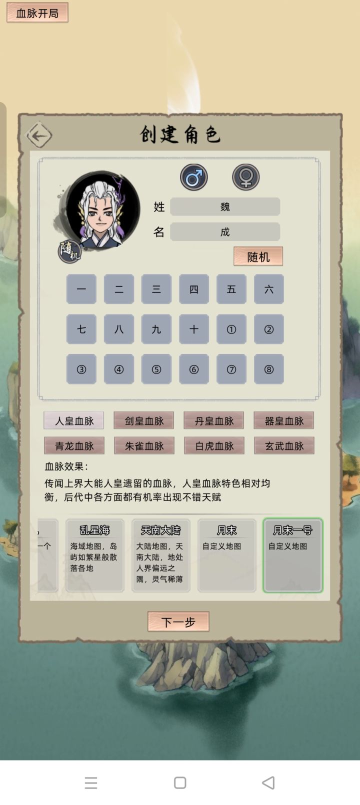 我来说说攻略。先自定义出你的人物。然后去自定义地图。自定义地图的时候先创一个势力,给这个自定义势力山门塞满你的自定义角色,然后把这个自定义势力山门的改成无势力。记住山门名字。保存好大退,从新进。然后选择一个新档开始选自定地图玩。后面选定记住的山门初始山门。