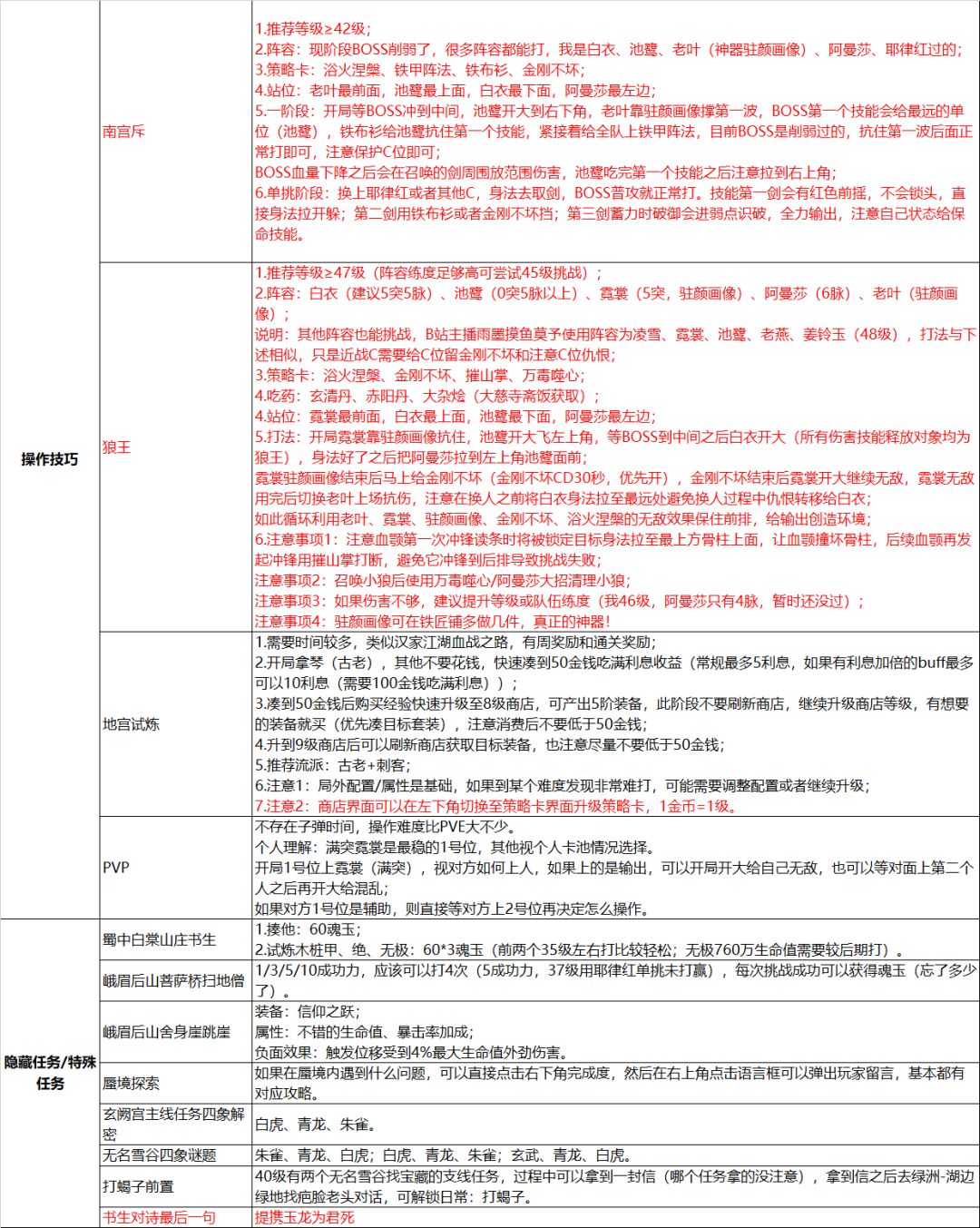5.操作技巧增加南宫斥、狼王打法说明(驻颜画像YYDS),增加地宫试炼策略卡升级说明;