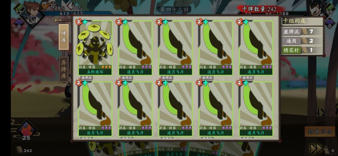 (因为不知道废牌流的出牌顺序所以无意间导致牌堆被追月飞刀塞满)