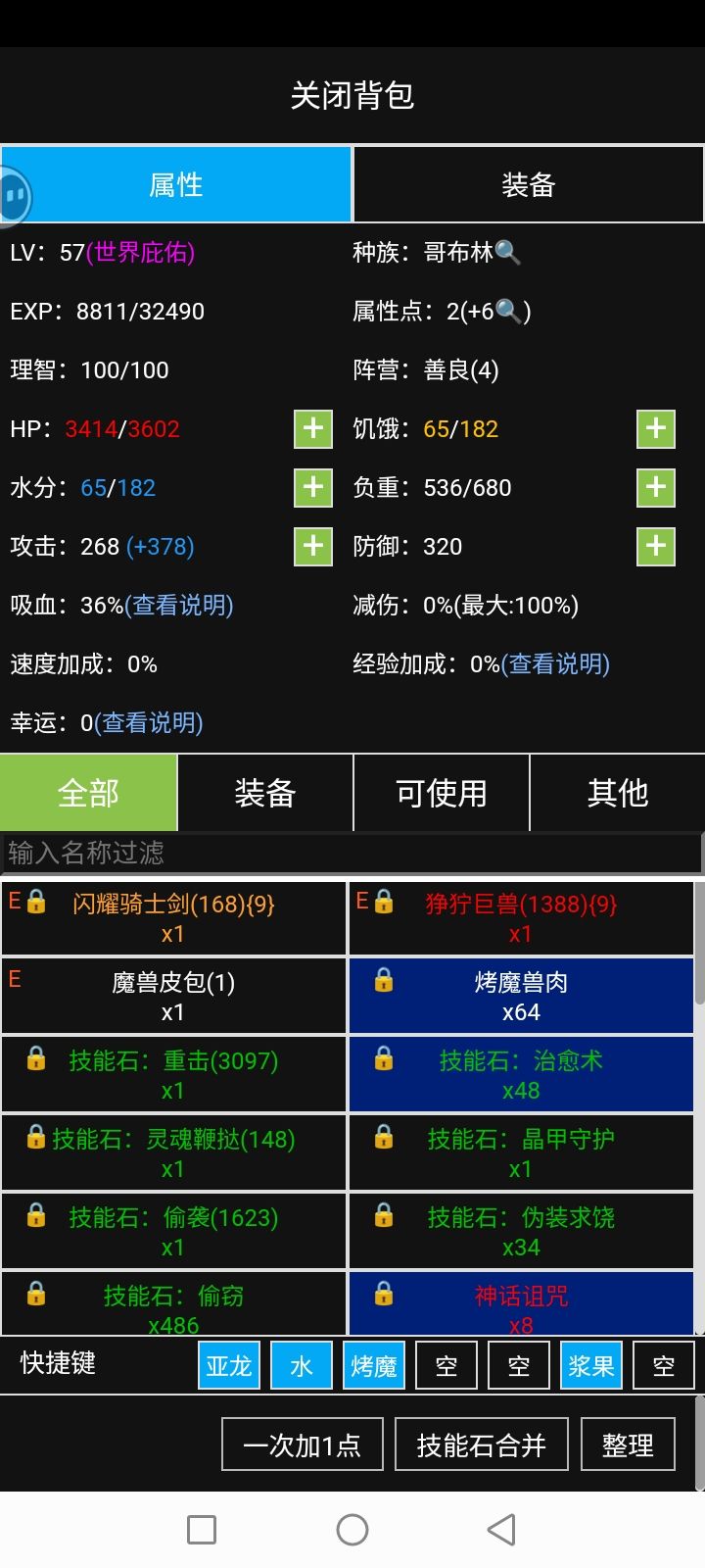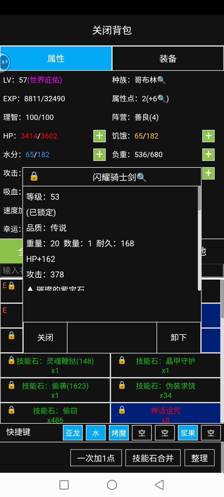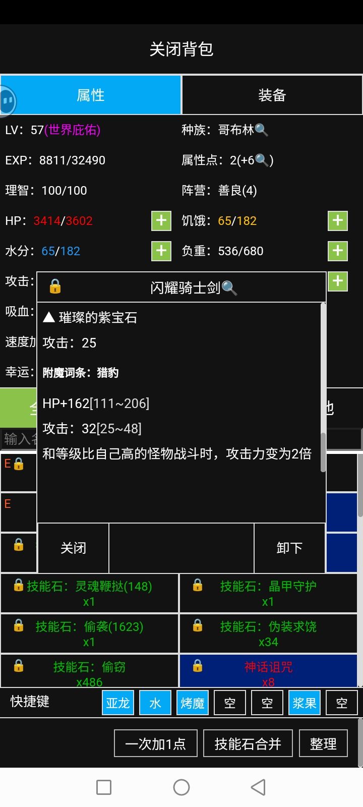 九个加25攻击璀璨紫宝石的闪耀骑士剑和六个璀璨紫宝石加三个加12吸血璀璨橙宝石的狰狞巨兽,有吸血打小怪的时候好用。