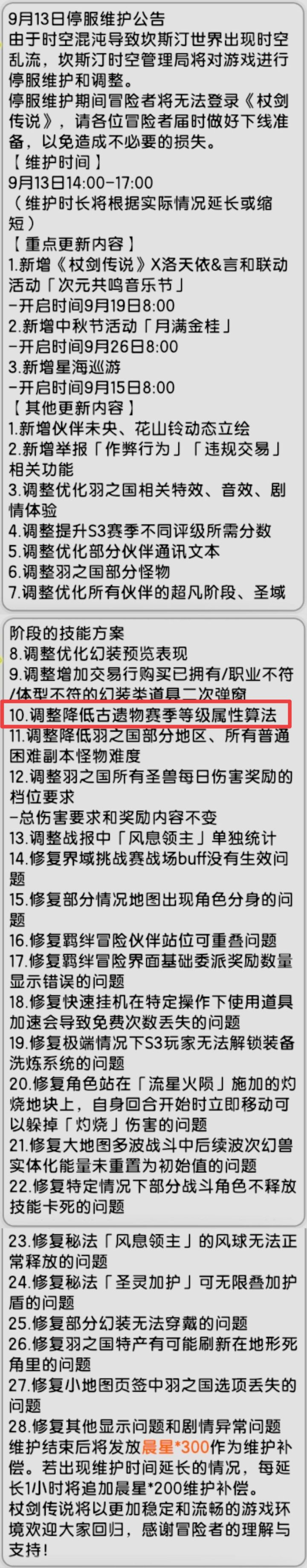 关于明天古遗物数值削弱的问题