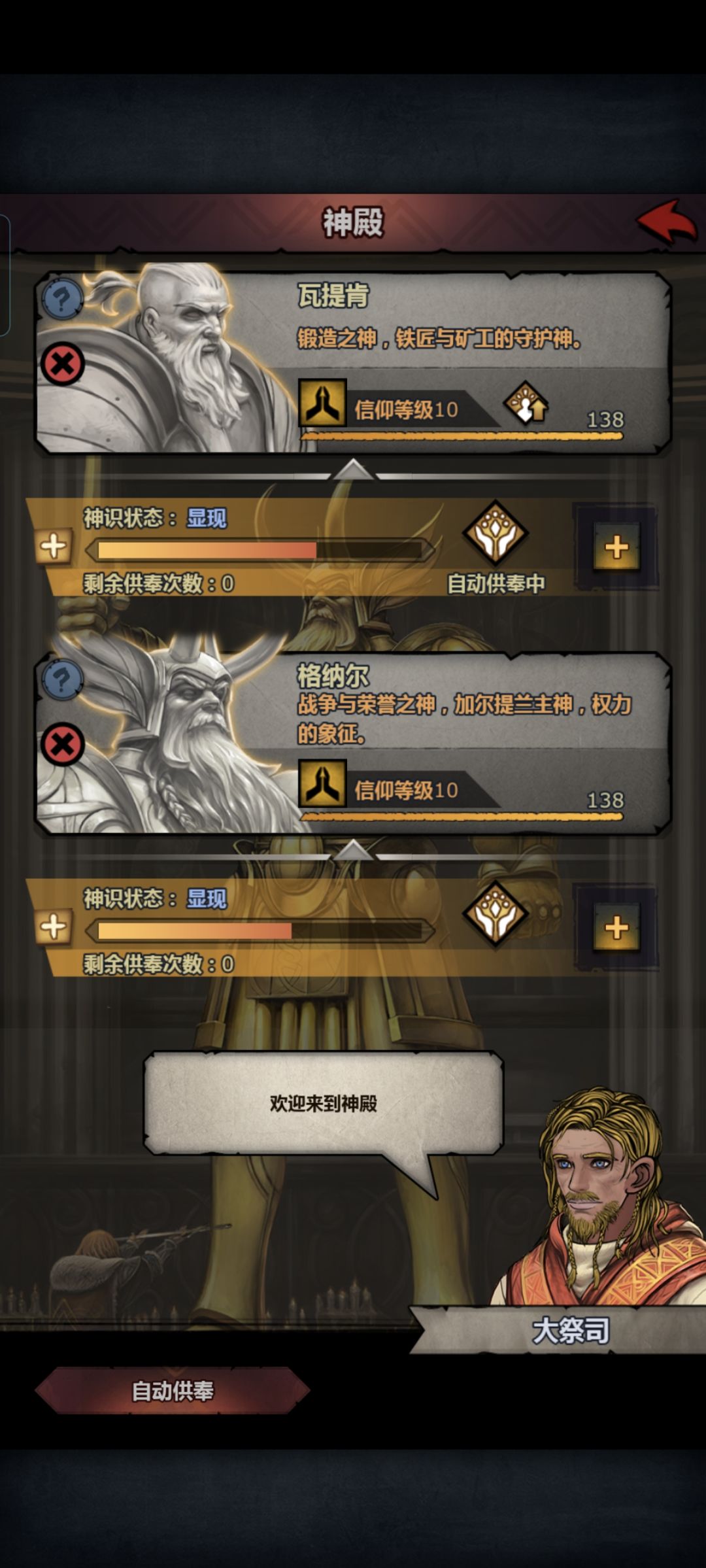 在我成为老登之前,我只会做纯血神子,目前佩尔、塞宁、希尔都已用伯爵提纯,科内塔神识已满,瓦提肯和格纳尔也快充沛了。我想先升神像,提高面板