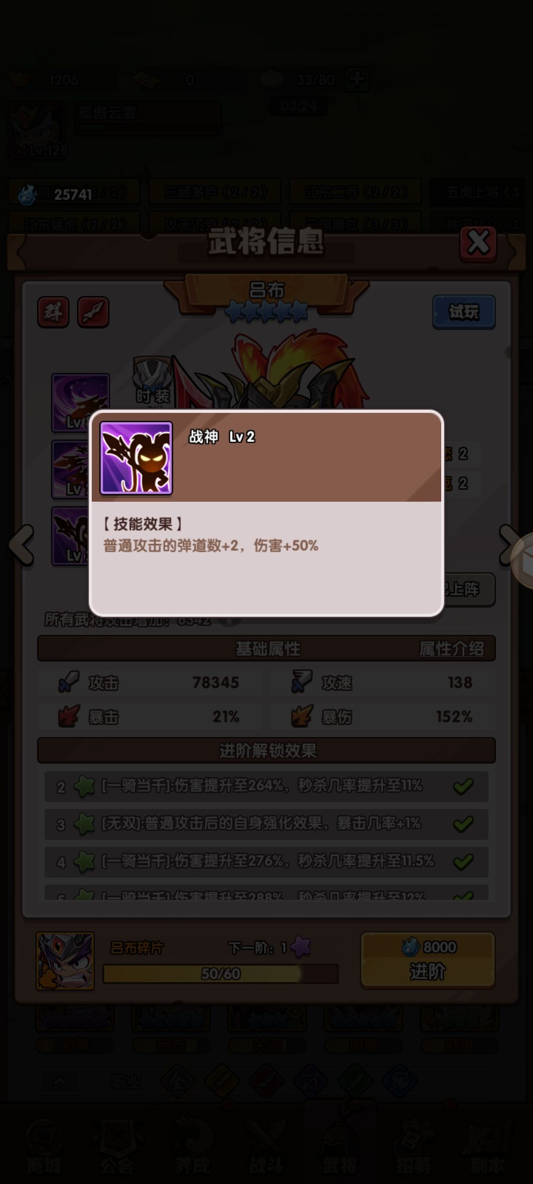 战神:普攻的弹道数+2,伤害+50%。
