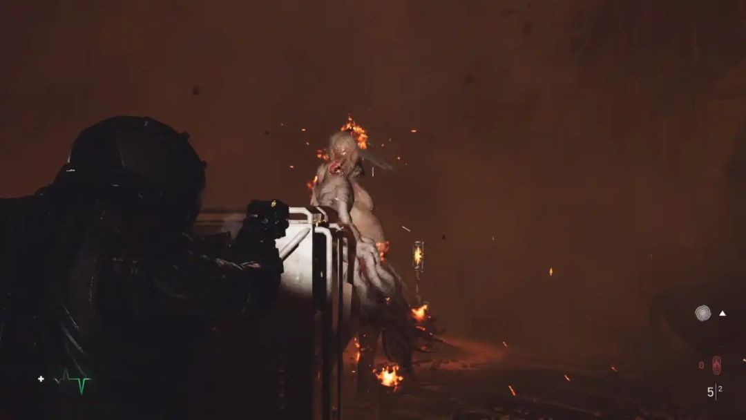 当然也会有一些小技巧与道具可以缓解玩家的压力,比如随处可见的油桶,打爆即可燃烧怪物,使其产生硬直,同时道具也是提供的燃烧效果,甚至到后面的地图中,油桶更是随处可见,这也是为什么我在标题上说,战斗比博燃,燃烧的燃,也是燃()。