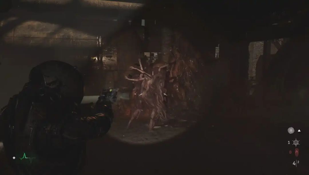 那么说道怪物,我们再来赏析一下名为流孤怪的敌对势力。流孤怪长相诡异,仿佛是将几个血肉模糊的尸体胡乱拼接在一起,主要攻击手段为甩手。一般的流孤怪打头即可,但部分精英怪会进化出长刺的护甲,甚至能反弹子弹,加上前期玩家的枪械稳定度较差,瞄不准才是常态。