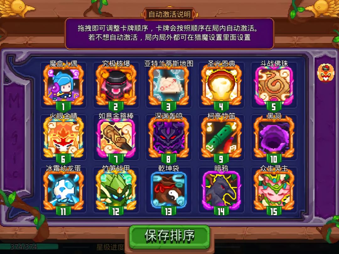 猴皮优势:-多一个卡位非常灵活,可补增伤、攻击频率或功能卡;