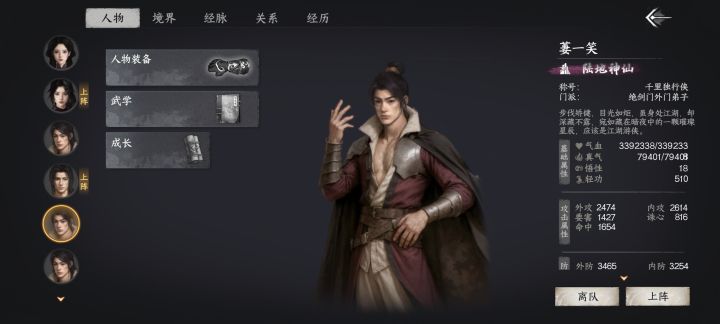 开局按照我之前的攻略随便招募一个陆地神仙(他成你队友后只有几万的血量)不慌,随便加入一个门派做悬赏做到掌门,把门派里的大部分人都踢掉腾出空位(点成员任职可踢),找到陆地神仙后送礼把好感刷满,注意⚠️⚠️⚠️先招进门派,再招募成队友,反复测试,百分百管用!