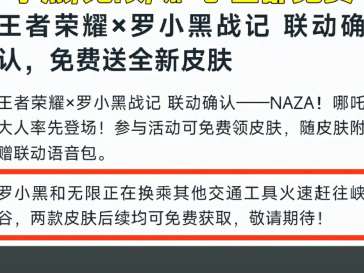 王者:罗小黑联动皮爆料!全免费!