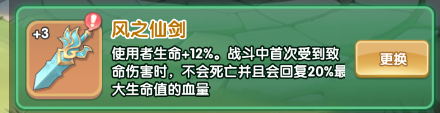 ● 风之仙剑(生存核心):0星加12%生命,首次受到致命伤害时不死并回20%生命(1星提升至30%生命+回1点怒气),强化坦克的抗伤能力,而且是保命神器。