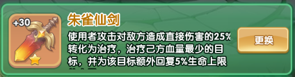 ● 朱雀仙剑(辅助治疗):0星攻击转化20%伤害为治疗(1星提升至25%+额外回5%生命上限)。