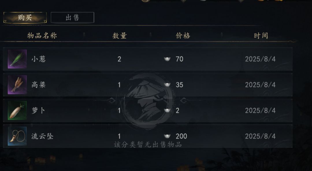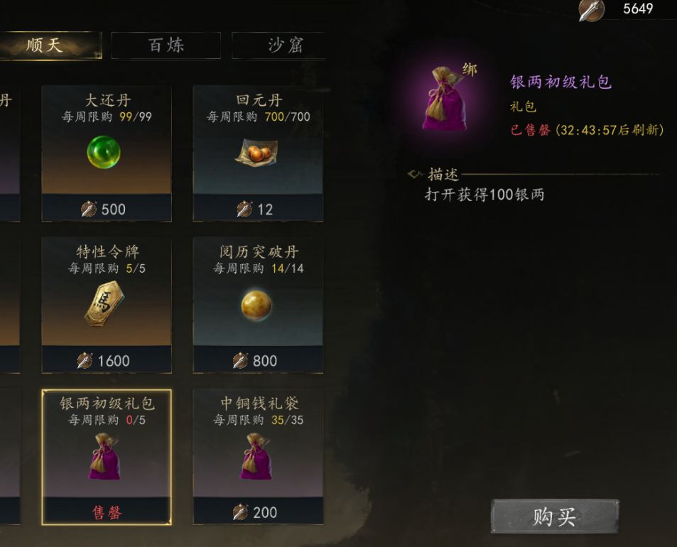 集市紫色品质以下装备 橙色品质以下材料 可用银两购买