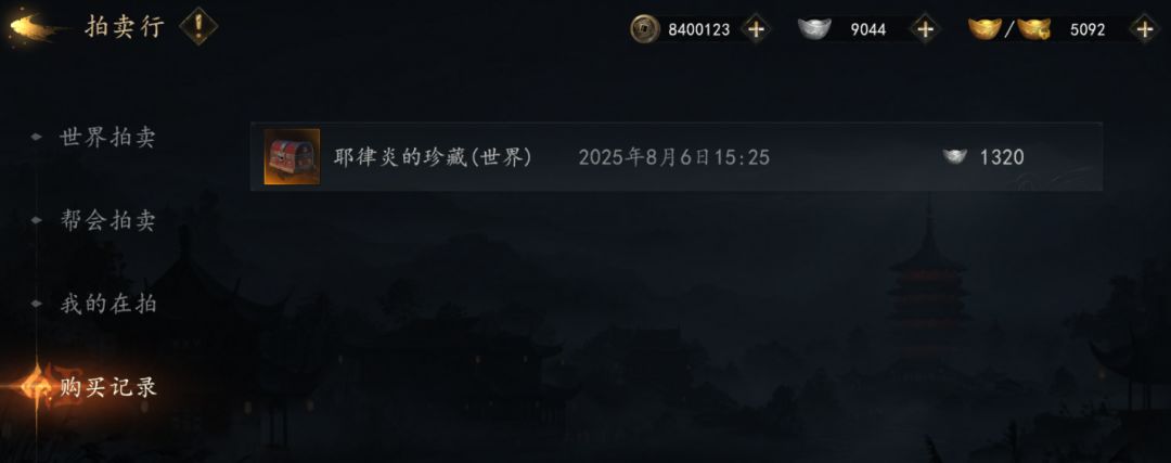 帮会拍卖高品质装备及珍藏可用银两购买