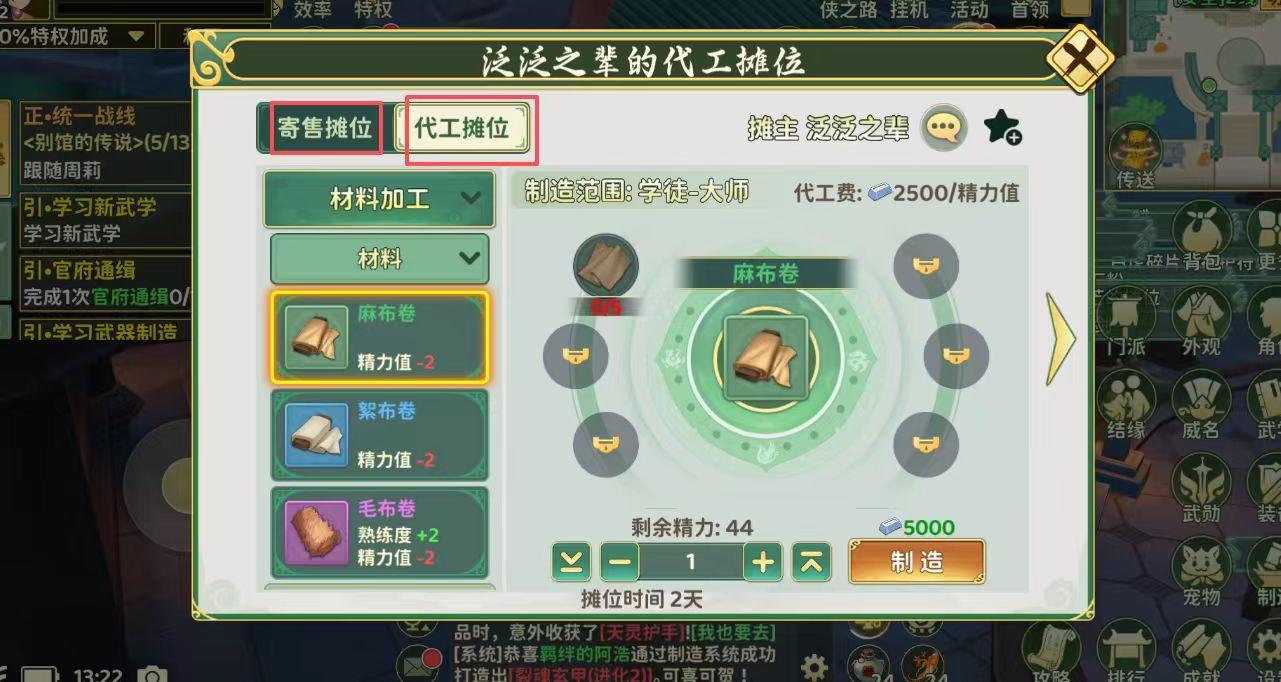 到这里我们就可以看出这些制造技能之间都是互通的、缺一不可。而地摊和代工就是把这几个技能连接在一起的玩法。所以他们之间的差别并不大,每个制造技能之间都是相辅相成的。#热血江湖归来 #攻略 #游戏讨论 #新游安利局