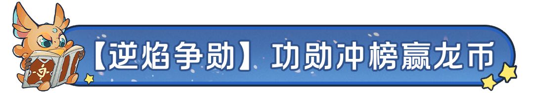 新剧本,功勋排位,龙币福利BUFF前来助力!体验酣畅淋漓的战斗,获得超值奖励,【逆焰争勋】功勋冲榜赢龙币活动开启!!最终榜单将在开服之日起第14天24点结算为止锁定,所有满10万(含10万)功勋的玩家都可以获得对应比例的龙币奖励!