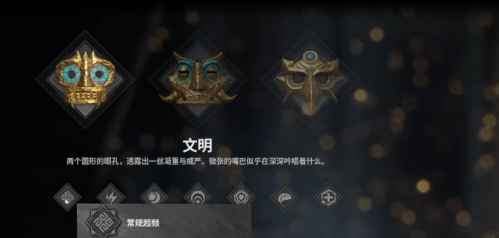 1、游戏开局共有三个面具供我们选取,分别是「文明」「征服」「富饶」。