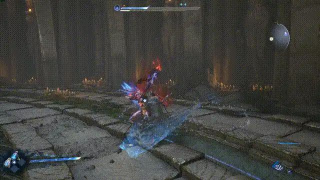 当我带着惋惜的心情打开游戏时,能够感受到制作组在人物动作设计上的巧思。动作华丽且极具观赏性,战斗操作简洁流畅,犹如丝滑的面条般爽滑。吃起来顺口,又不粘牙。派生连招设计简洁明快,同时不失爽感。