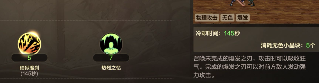 我们可以看到狂战一觉的冷却时间是145秒,但是利用真学套和灼风融合装备可以大大减少冷却时间。进去20秒之后开觉醒,然后再利用真学套施放小技能减一觉冷却的效果,注意真学套有20秒的内置CD,在进boss房间之前先减三次冷却,然后再进BOSS房间。这样怀表的刷新技能就能刷到觉醒了,也就能短时间用两个觉醒,这也是打世界BOSS怀表好用的原因。