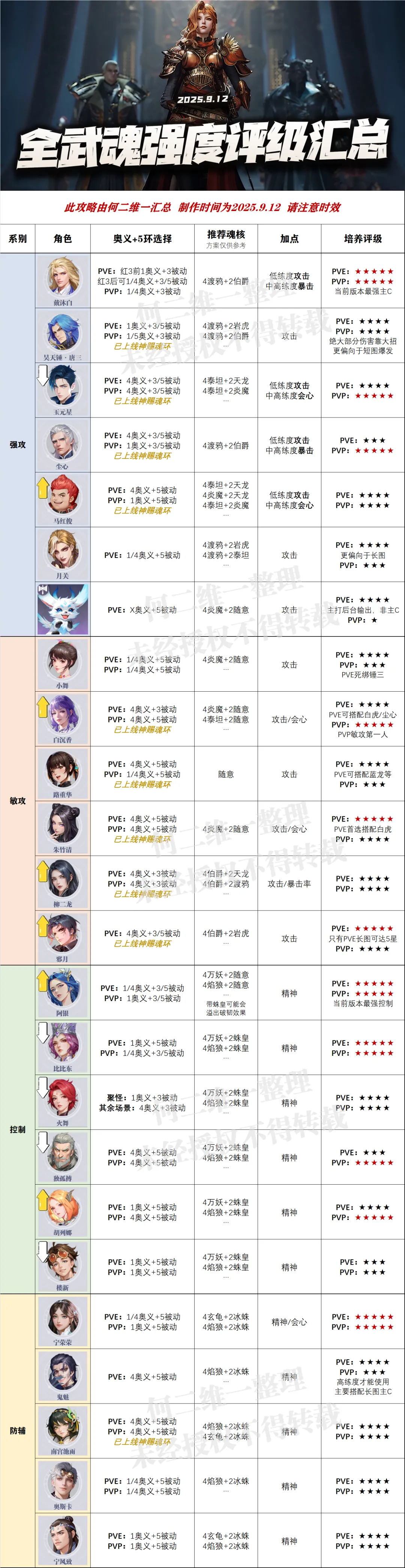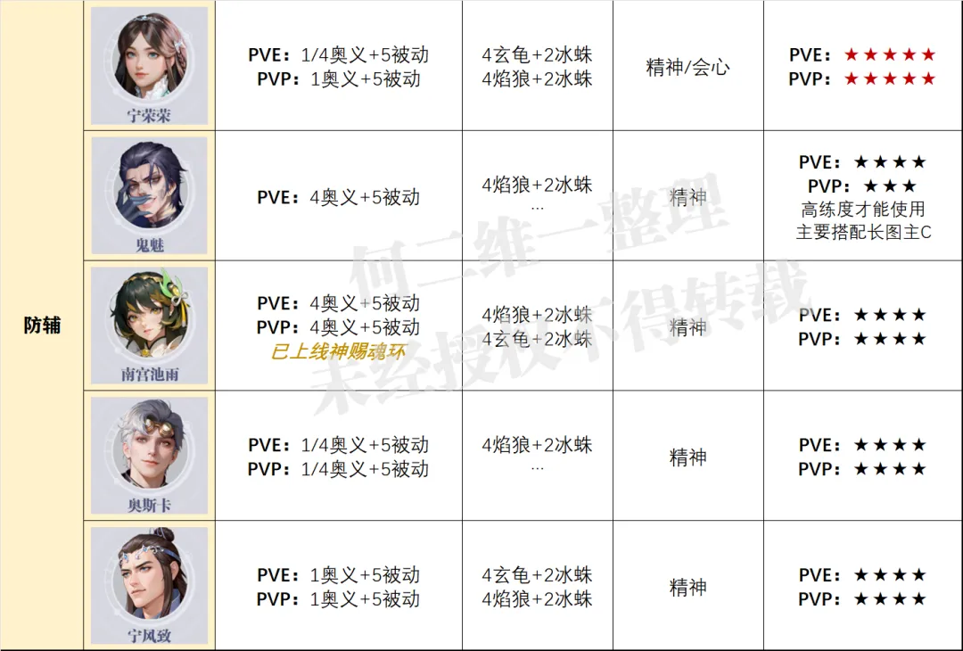然后第四个部分则是此次版本变动不大的辅助系,宁荣荣依然是一枝独秀的强度表现,目前维一好奇的就是第一位防御系的角色到底啥时候可以上线呢......这点也欢迎大家留言来聊聊自己的看法吧。最后维一便把一图流攻略放到这里,方便大家收藏备用,当然因为汇总的数据太多,如果有任何错误或问题、或者建议的话也欢迎大家私信维一,我后续会进行调整修正的,再次感谢大家的支持。