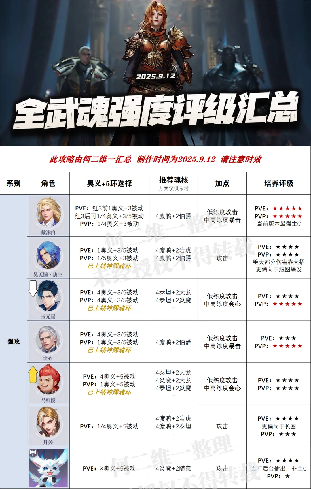 猎魂世界:阿银上线后的全武魂强度评级及养成汇总!(9.12)
