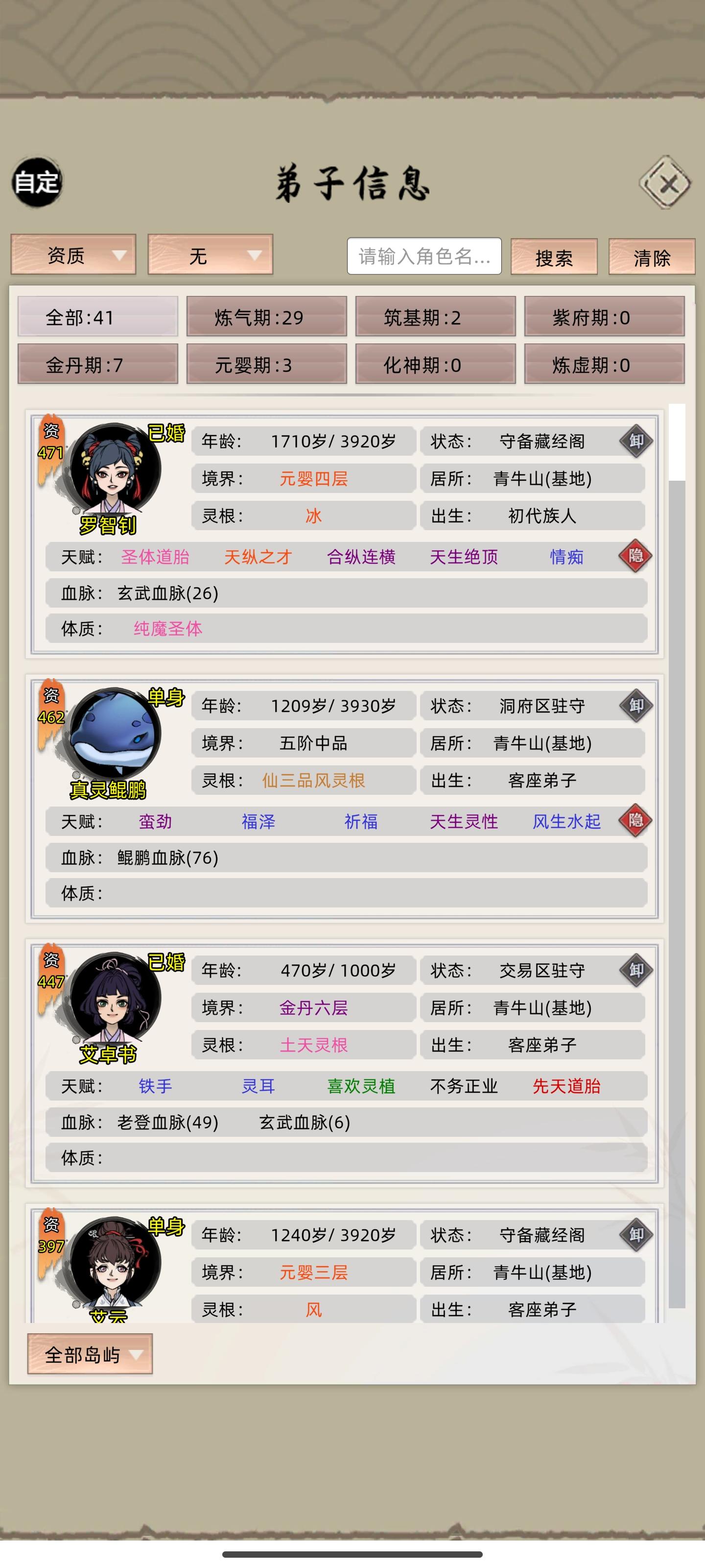 可是开局没有人怎么办?建庶务堂,里面有一个外门弟子转化为内门弟子的功能。有500个练气,10个筑基。可以先招个几十个帮忙打工。