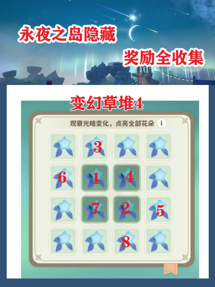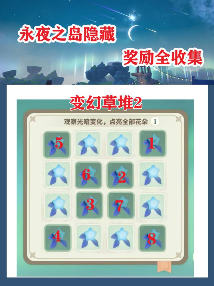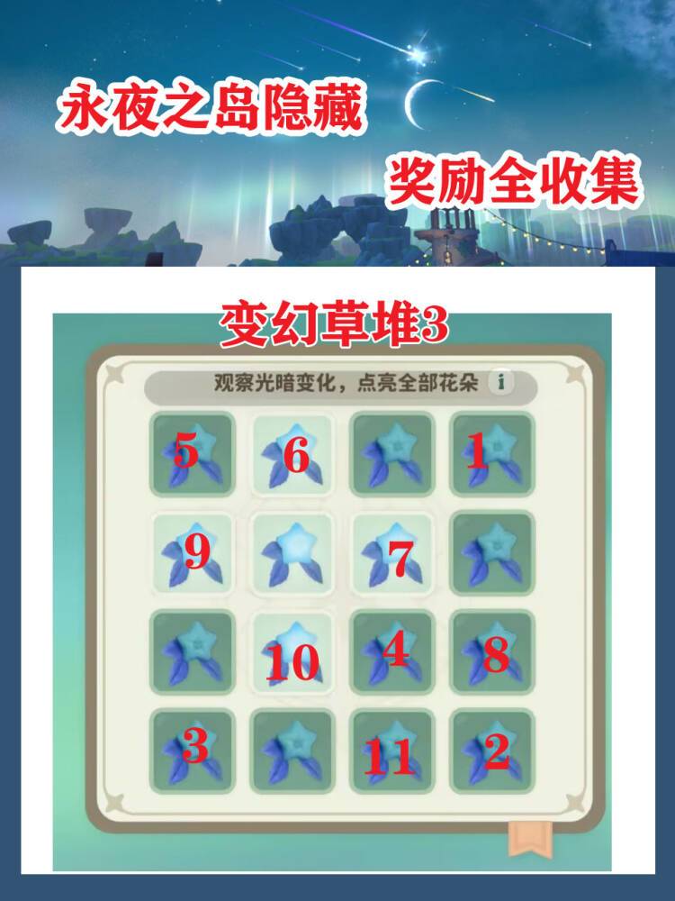 永夜之岛全部隐藏隐物品收集幽夜币共9个,有三个需要点亮蘑菇法阵(靠近转一圈)。两个隐藏服装波点瓢虫背包,火爆章鱼串(手持物)。变幻草堆和剧情任务玩法一样。