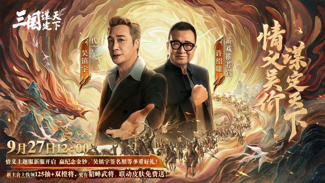 情义吴价,谋定天下!《三国:谋定天下》情义主题新服将于9月27日12:00盛大启幕!代言人影帝吴镇宇和游戏推荐官许绍雄倾力助阵,与主公一同谱写情义新篇!