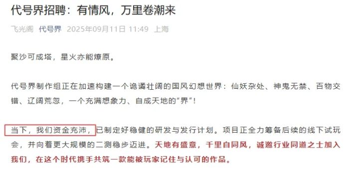 原文公告称:我们资金充沛,已制定好稳健的研发与发行计划。项目正全力筹备后续的线下试玩会,并向着更大规模的二测稳步迈进。