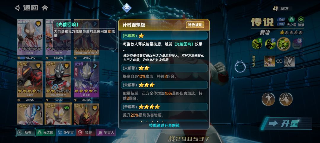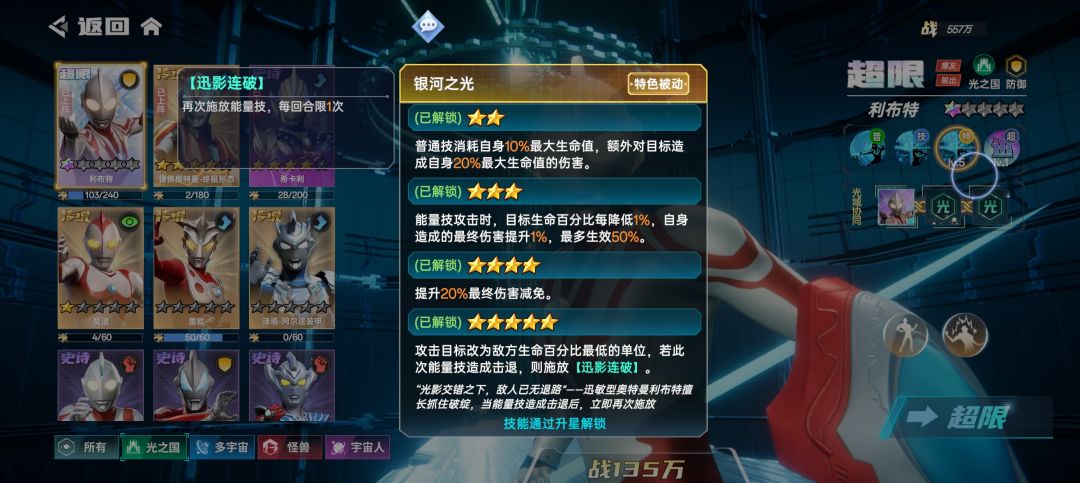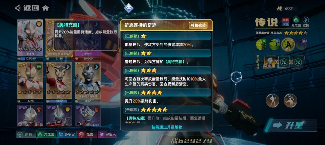我自己在玩的光之国阵容,所以现在只说光之国为主的阵容,其他的没玩过不了解不知道。