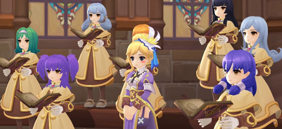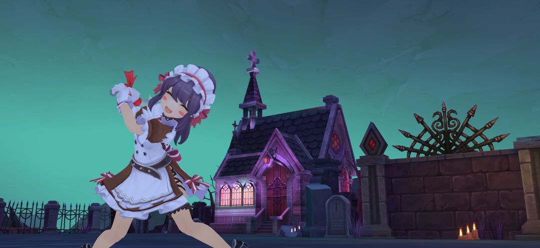那天,我蹲在教堂旁边的路灯下,突然,一个穿着粉白制服、双马尾飘飘、脸上带着微笑的NPC小姐姐站在我面前。