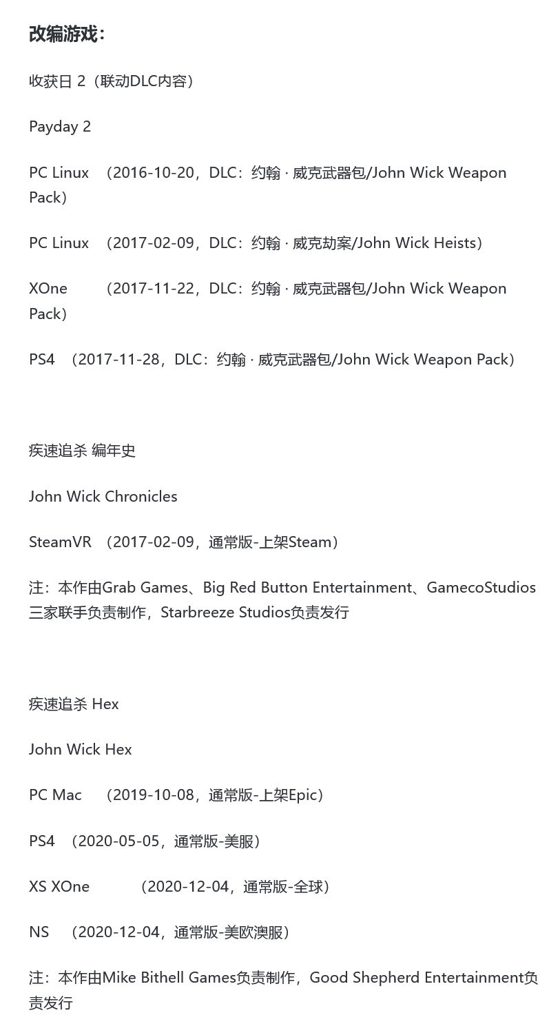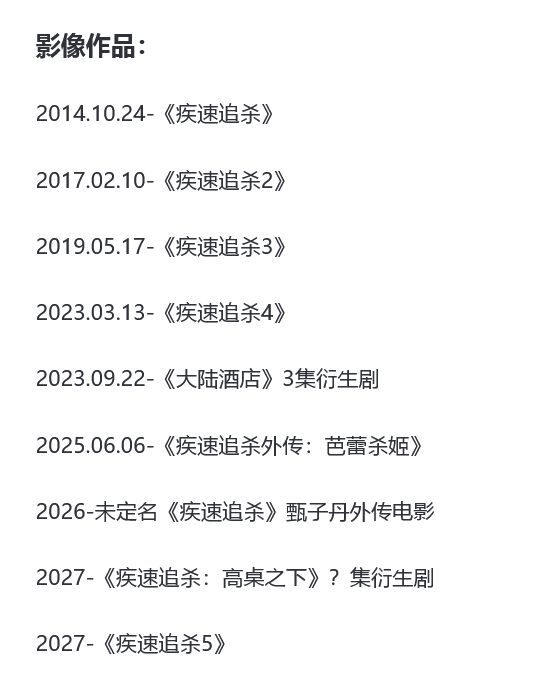 目前,《疾速追杀》系列已推出多部电影、改编游戏内容