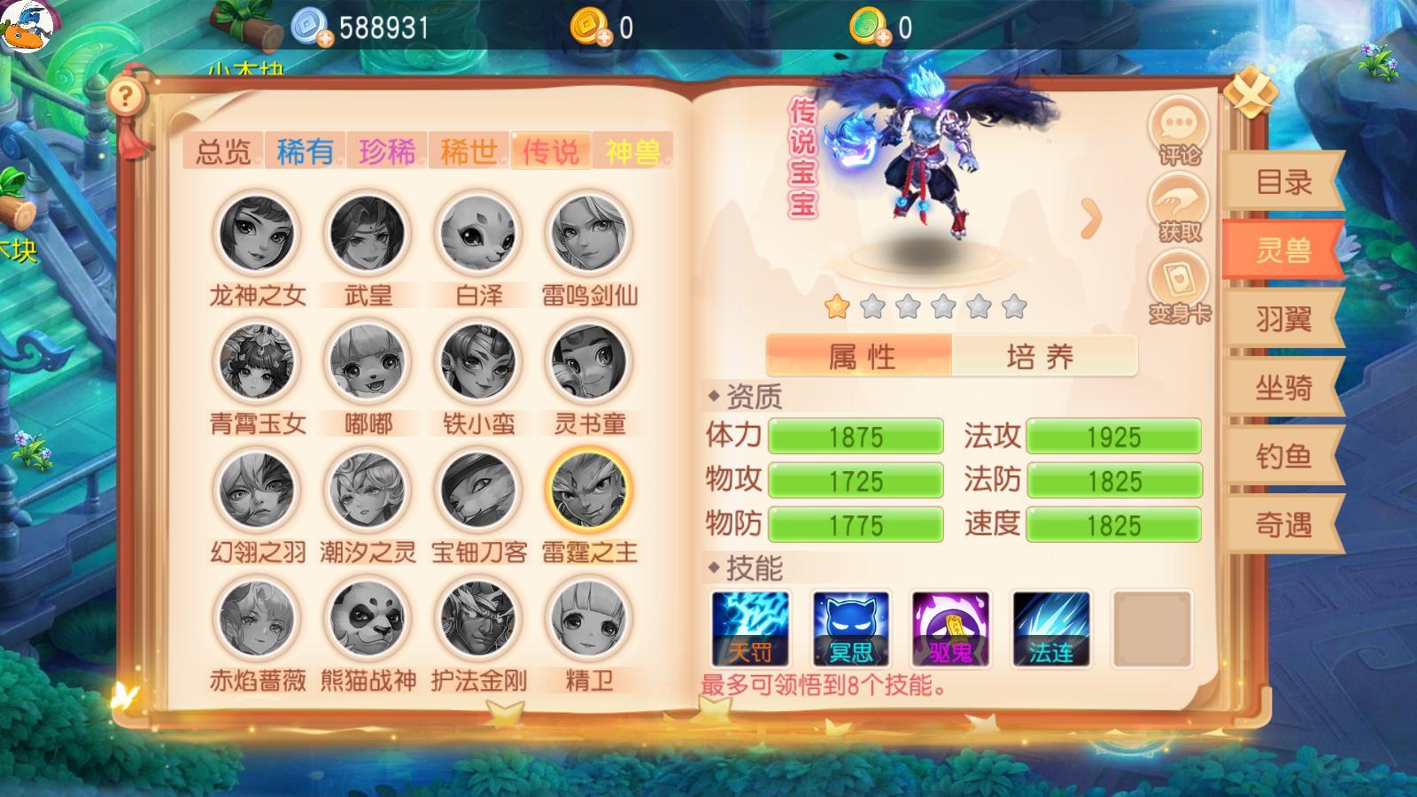 ★升级机制:宝宝合宠、打书、灵练不掉技能
