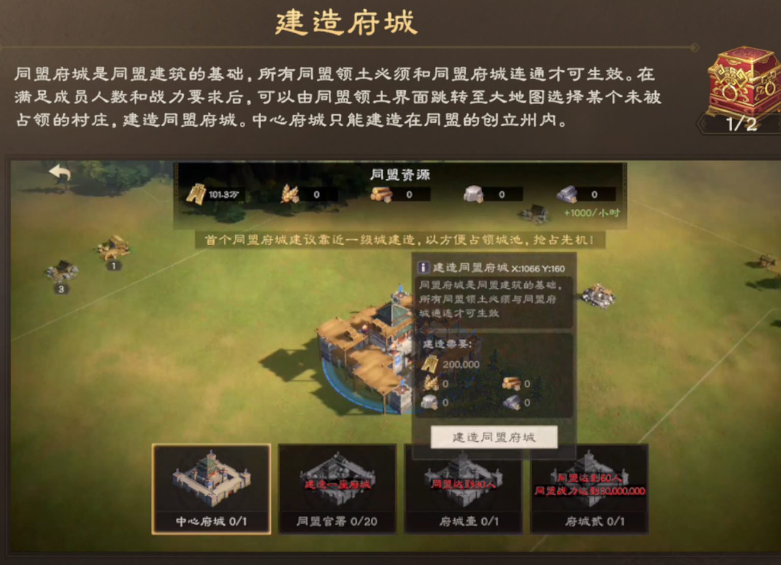 主公可以在村庄上面建造同盟官署,获得同盟领土加成。