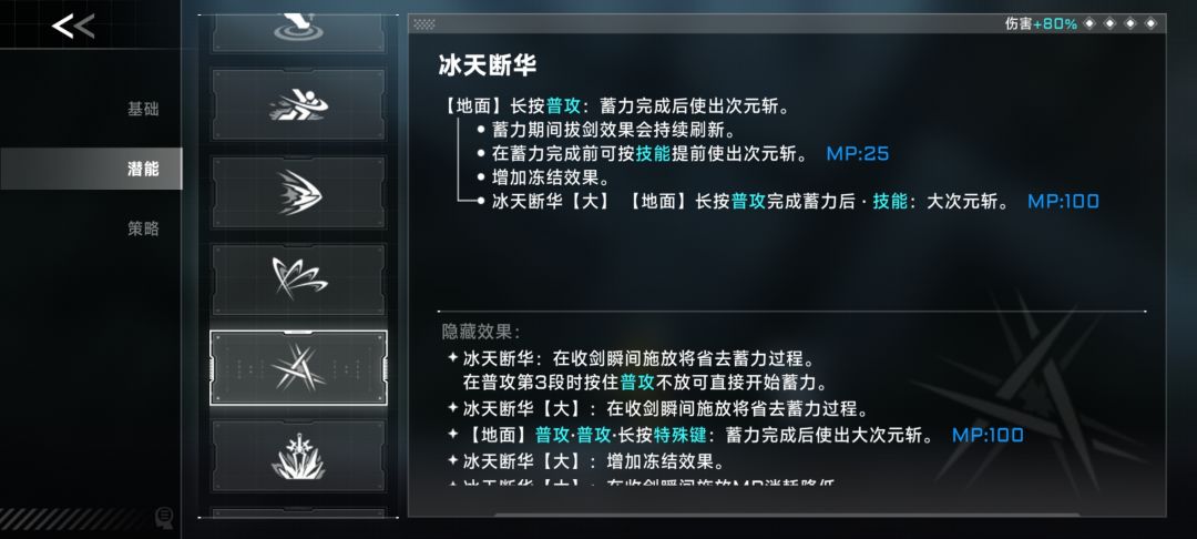 在一些动作后点按特殊键即可(有些可能没法用);或者,裂冰→滑到技能键释放。