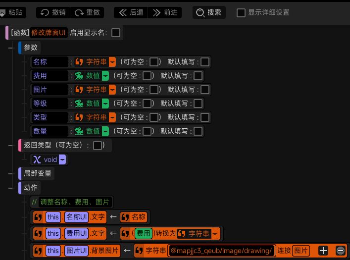 将卡牌面板所需的信息(名称、费用等)添加在参数,然后将这些参数赋值给"this"里对应的内容(P7)