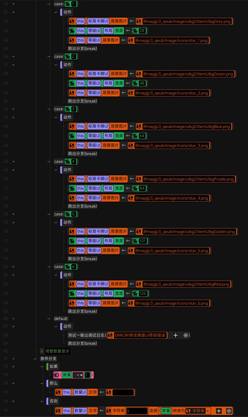 最后分情况对不同等级的卡牌给予不同星级UI和背景UI,并赋值部队数量信息。