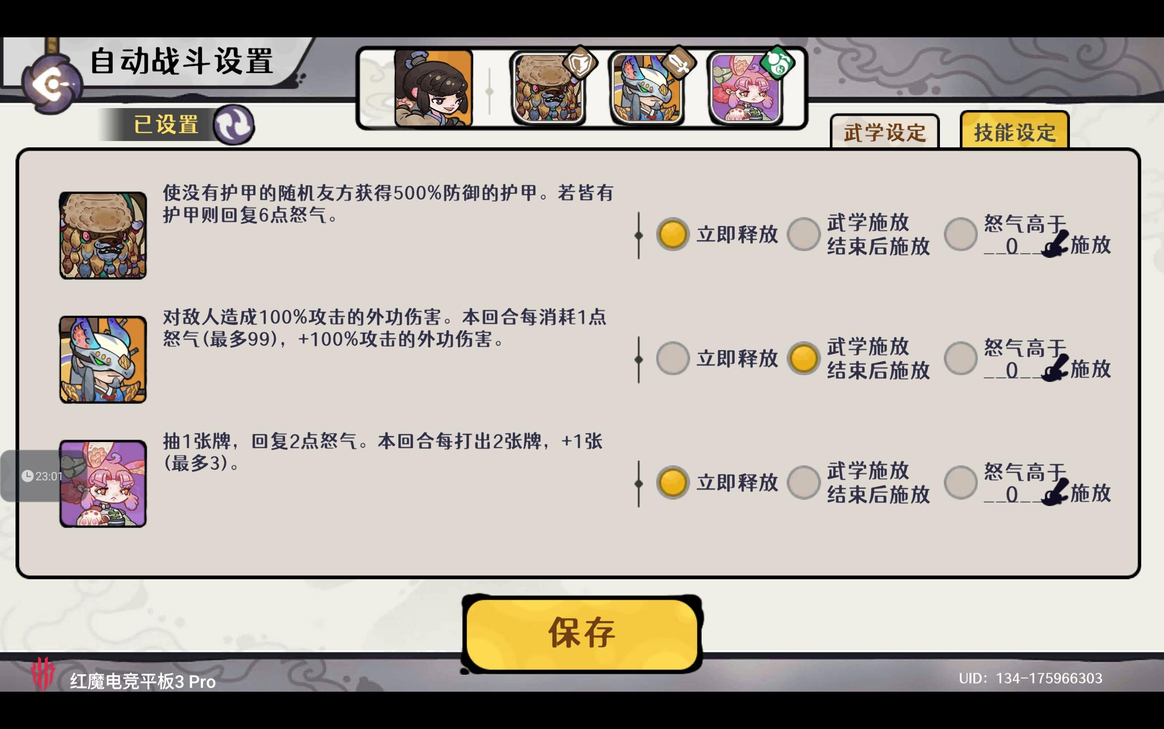 阵容、古器、装备、武学和技能设定分享出来,仅供参考