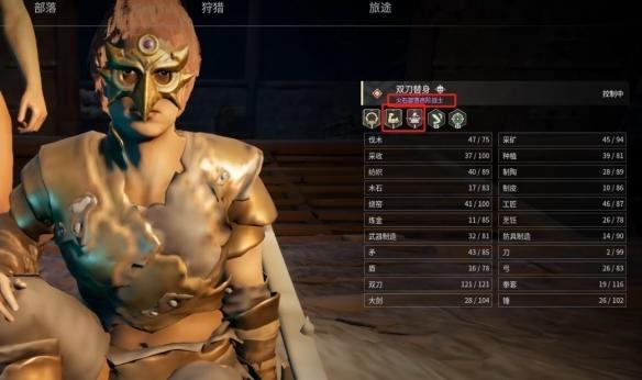 6. 属性点根据培养方向加。熟练度的话,生产奴隶,专职的建议加产量,如果不是专职,练等级用的,比如战斗奴隶干木工练等级,那么木工熟练度就点加效率的。武器和防具制造,这里建议轮换,比如前期要一个青铜武器品质的,其余加成选耐久,后面换地图了再换奴隶。