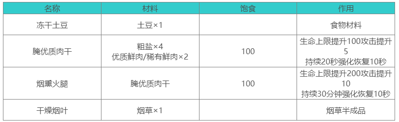 在这个制作台中一般不会去特意制作什么,都是使用普通的肉随手丢进去,前期用的比较多。