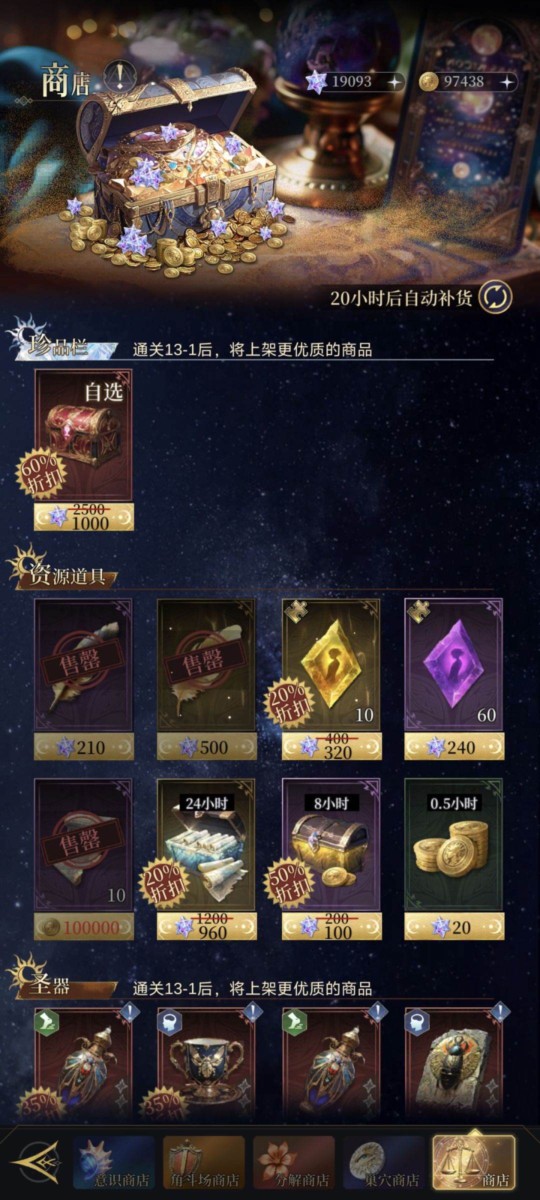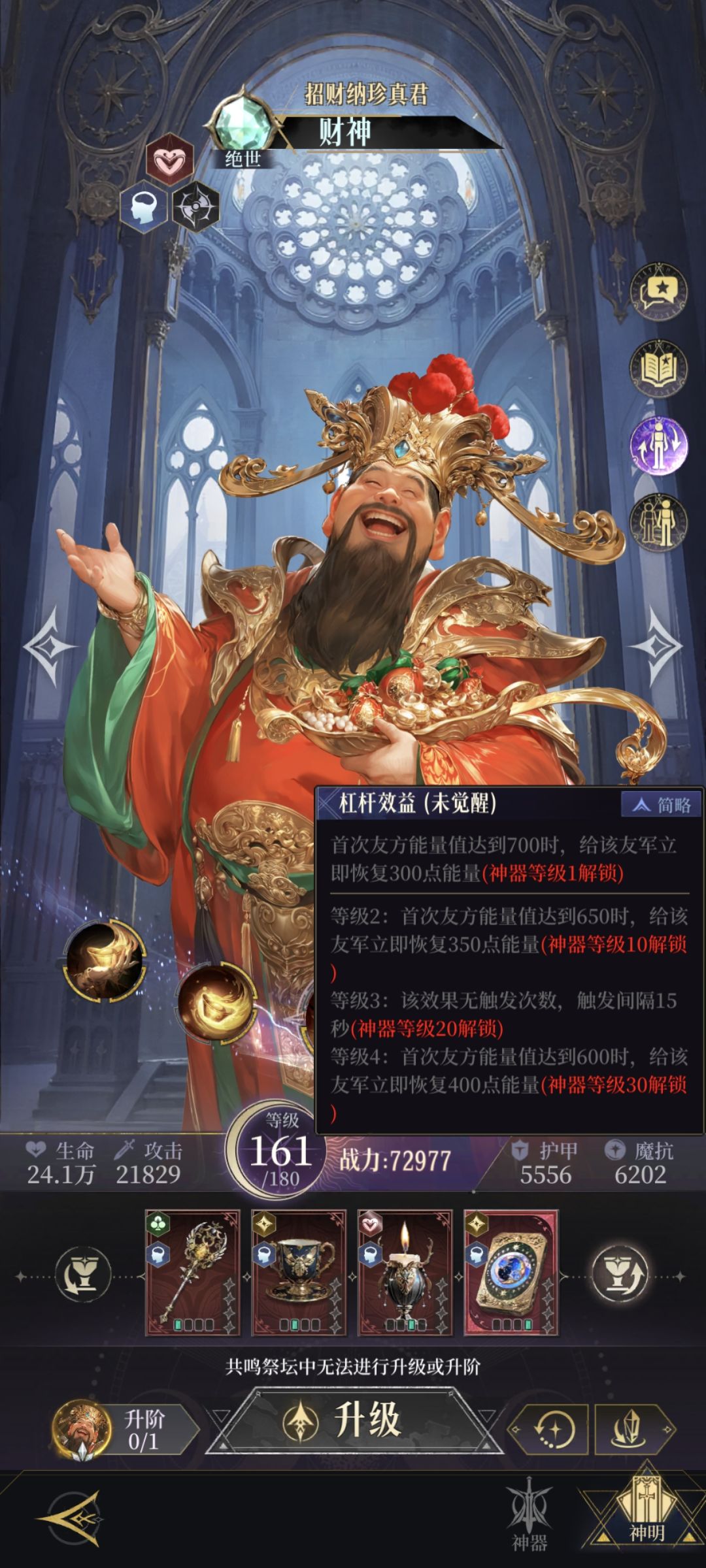 (不氪金超级超级缺,金红瓶子升神器等级,基本上强的牌都是神器十级质变)