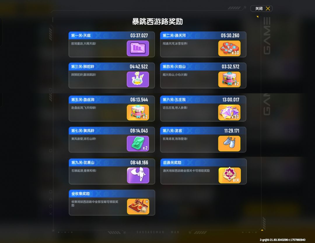 第一关-天庭:「暴跳西游里程」数据卡