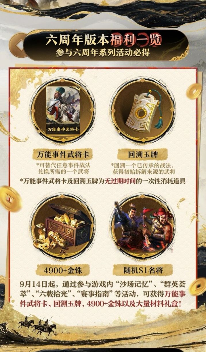 【六周年庆】万能事件武将卡、战法回溯、新武将新剧本全公开!